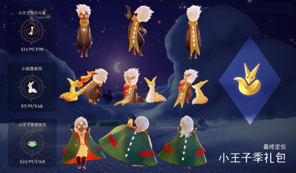 2、目前在光遇小王子季中,需要氪金的礼包,还有围巾斗篷和小狐狸背饰。