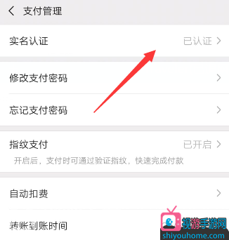 3.在支付管理界面我们可以看到有个“实名认证”,这边可以看到我们已经实名过了,我们点击实名认证进去;