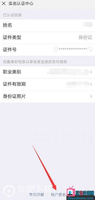 4.点进去之后我们看到在最下方有一个“账户更名”的选项,大家点击账户更名就可以重新认证实名信息了。