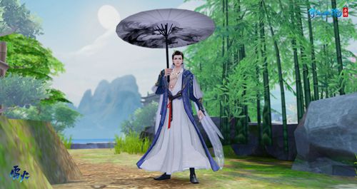 沧海鲛泪男款时装主色调为蓝白,上身袒露出紧致的胸肌与腹肌,腰间细带自然地挂着,放荡不羁又满是贵气。头发简单束起,呈现出完美五官。