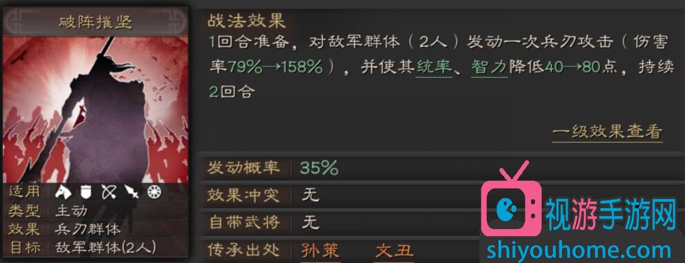 主动战法,发动率40%;