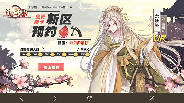 为庆祝两周年,《食之契约》将在12月5日增设新服【索尔萨维斯】,提供给新晋御侍大人更广阔的全新环境。新服预约目前正在火热进行中,御侍大人可在12月4日23:59分前,前往专题网页进行预约。