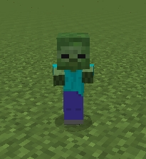 普通僵尸是最为常见的僵尸形态:绿色皮肤,空洞的眼窝,以及与史蒂夫相似并破破烂烂的衣着。僵尸高1.95方块,宽0.6方块。