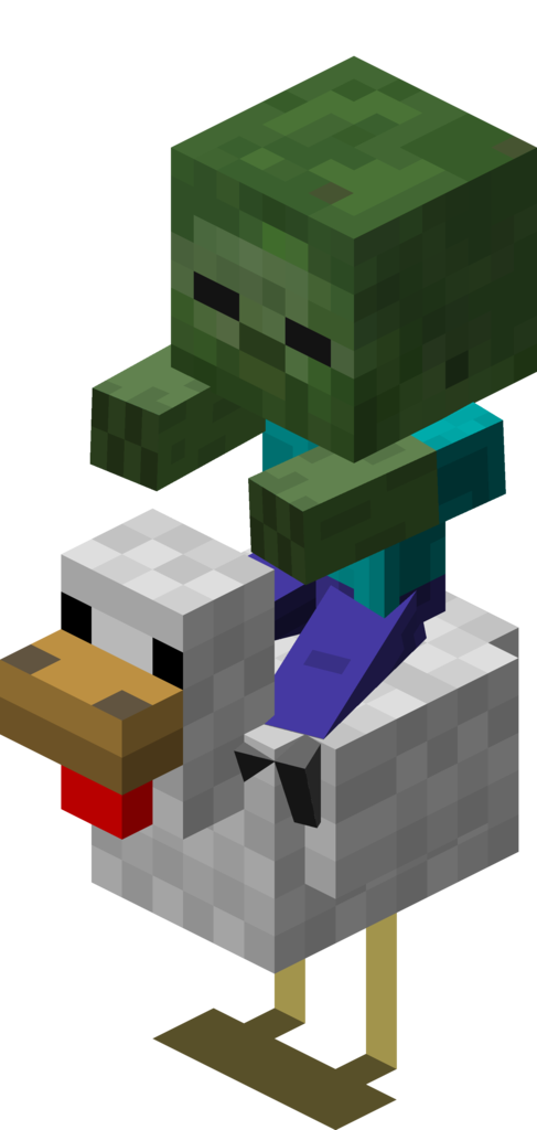1.7.4以后,僵尸中有一定的概率出现鸡骑士,鸡骑士就是一只幼年僵尸骑着一只鸡,每一只幼年僵尸都有5%的几率生成时是骑着鸡的(包括幼年僵尸村民和幼年尸壳)。