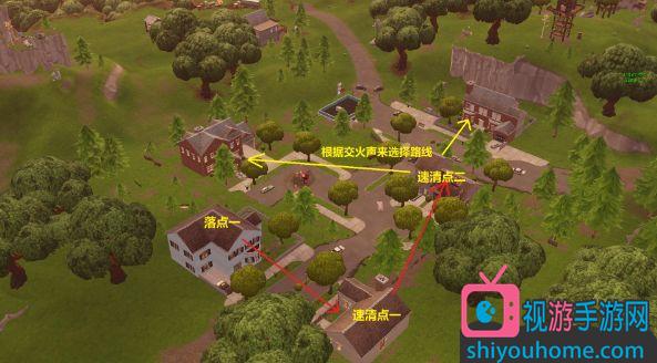 降落点二的打法就比较简单粗暴了,因为是在外围,搜刮时从盐泉内的交火声基本能很晰的分辨出是哪栋房屋、什么位置发生的交火,搜完后落点后差不多就可以直接强势插入盐泉了,哪里交过火就直接去哪里,如果你想要保险起见的话也可以先到落点1的楼顶戒备观察,找到人再行动。