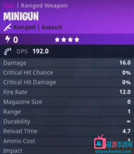 堡垒之夜史诗迷你炮伤害属性介绍,堡垒之夜史诗迷你炮详细效果分析由视游网提供,主要帮助大家更加深入的了解这把武器的性能!