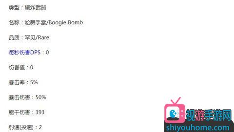 首先尬舞手雷品质是罕见,所以不一定能捡到,在看看它的属性就会发现它是没有一点伤害的。这个时候很多玩家可能就要问了:没伤害要它干嘛,手雷不都是拿来炸死人的么。这恰恰是它的有意思的地方,它的独特效果就是只要爆炸,那么范围内的玩家(这里是不分敌友的)就都会什么都干不了,只能跳舞。