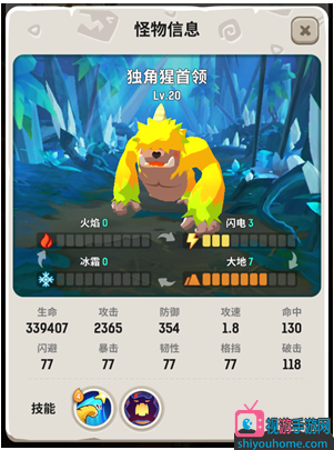 宠物:独角猩首领属性闪3地7,宠物完美克制火闪。