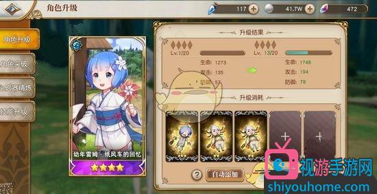 1、实际上,角色的升级是玩家短时间内提升属性和实力的简便方式。在【强化】功能中可以升级角色,升级材料为素材卡,角色卡也可以使用。