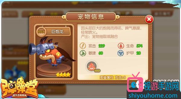 巨炮龙:攻击229、生命574、敏捷60、护甲20