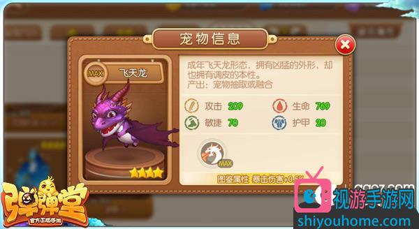 飞天龙:攻击209、生命769、敏捷70、护甲20