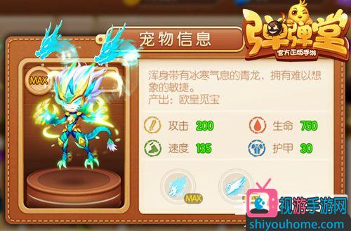 朱雀是火之女王,青龙则是风之帝皇。《弹弹堂手游》新版本发布后,第二只神宠青龙上线,以青、蓝、绿为主的色调,双肩两个虚幻的龙头造型,酷帅的难以形容。满级青龙拥有着高达135的速度加成,主动技“青龙波”和被动技“豹速”带玩家体验速度的快感!适合控制攻速流玩家。