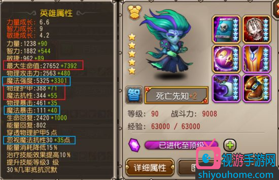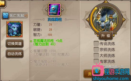 1.主洗力量,智力洗到40以上即可:使用该洗练方案的玩家大致上是认为,作为一个能抗能输出的肉系中排法师,死亡先知的血量非常重要,在JJC中多一点血量就增加了DP的生存机会,开大之后DP站着就是输出,更肉的死亡先知在JJC中的综合能力更为强大。