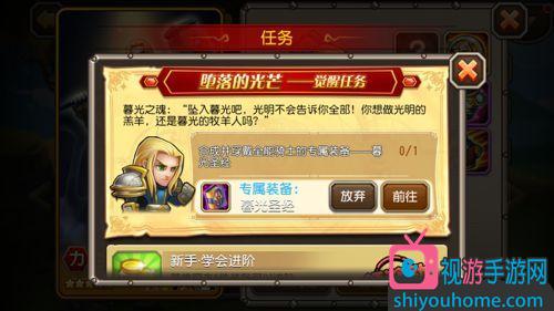 觉醒任务为英雄合成觉醒装备后即可开启觉醒任务。全能骑士觉醒首先要完成难度6潮汐神庙五次。相信对于战队已经90级的队长们来说不是什么难题。第三节任务则是全能骑士参与完成第14章巨龙巢,且无人阵亡。这对于全能辅助的超级奶爸来说无人死亡是妥妥的。