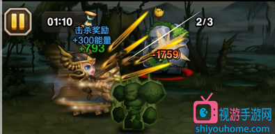 2、持续型输出方式,意味着伤害很高,从图中可看到,军团未觉醒时打小小能每次能达到1759伤害,并且每次给予军团793的吸血回复。