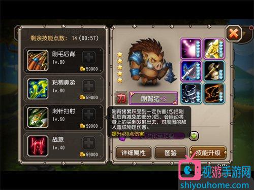 因为大招刚毛后背可以为刚背猪提供不错的生存环境,所以玩家们如果要让刚背猪更肉的话就一定要点满,然后三技能刺针扫射又和大招挂钩,而且是个类似被动的技能,只要承受的伤害到一定程度就可以释放,所以要副升。
