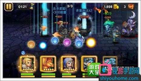 在远征、副本、试炼等可手动选择三个球作为目标技能的切换,但在竞技场应该是随机组合;而且从切技能到技能释放目测需要两次普攻过渡