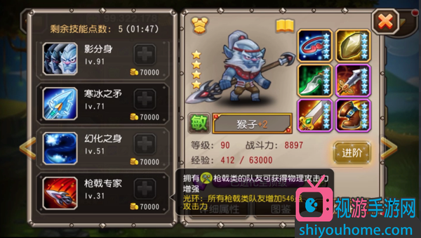 满级属性上,猴子生命、物攻、魔强、生命回复等技能都要高于巨魔,但是护甲和魔抗就不足了,特别是魔抗,满星满级满魔法只有112,真的有点低。
