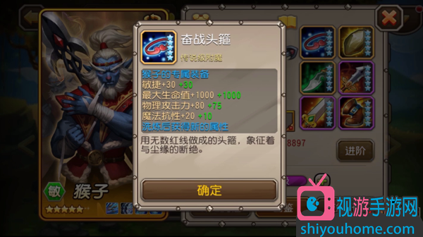 专属觉醒装备“奋战头箍”,猴子的敏捷、最大生命值、物理攻击力和魔法抗性都得到大幅度提升,大招更加让敌人招教不住。