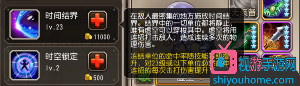 时间结界高度还原了DOTA中疯脸虚空的秒人定位,开启大招跳入后,虚空会冲入敌人人群最密集的地方对单体目标进行疯狂攻击并释放出范围极大的时光结界,而输出力度甚至超过军团,一个大招效果内轻松秒杀恶魔巫师这样的脆皮!在目标单位死亡之后将自动切换旁边的敌人单位继续攻击,而最后的几刀攻击即变成AOE模式,对周围敌人也造成巨额伤害!