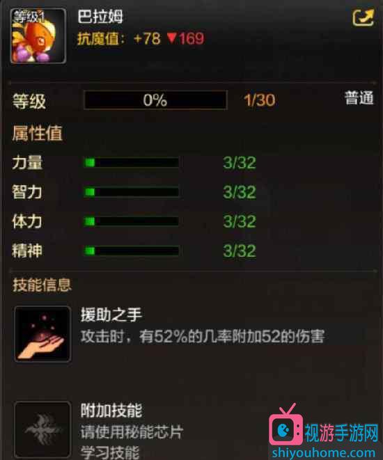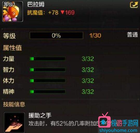 援助之手:攻击时,有52%的几率附加敌人52点的伤害。