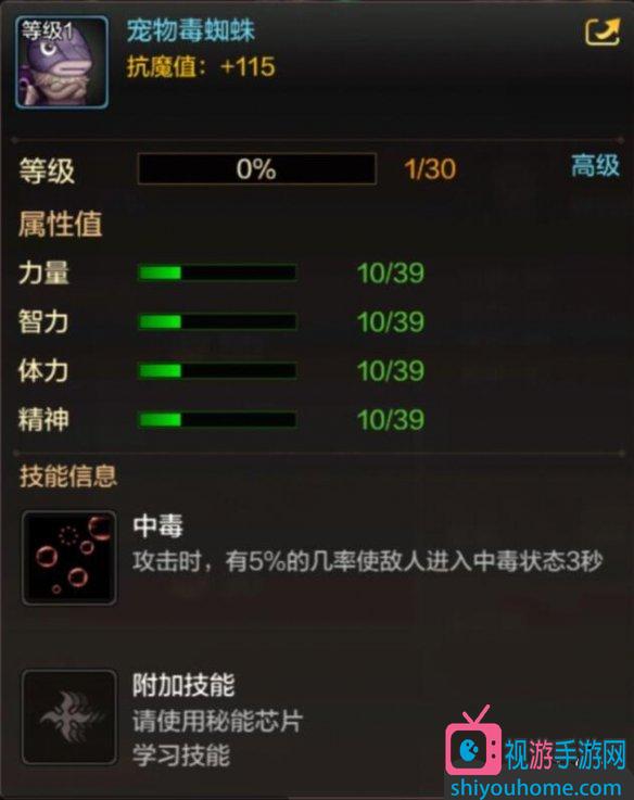 毒蜘蛛是地下城与勇士M中的高级宠物,有比较出色的基础属性和抗魔值加成。