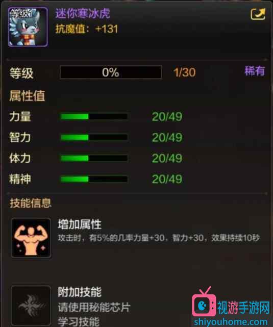 迷你寒冰虎是地下城与勇士M中的稀有宠物,有比较出色的基础属性和抗魔值加成。