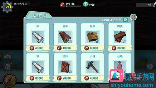 我们首先可以去学院的大本杂货兑换商那里看看,那里有很多我们所需要的材料,当然需要足够的瓶盖才能购买到,而且杂货商不是每次都有所需材料,右上角有商店的刷新时间,大家可以等待刷新后再来看看,也可以使用量子可乐刷新。