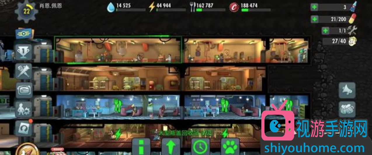 2关于物资的必要性私以为萌新阶段是电力超过食物大超过瓶盖超过水,到了养老的阶段能够将电力重要性放在最终一名、瓶盖和水向前挪一名,按自己需要(电力升级房间/食物升级居民等级/瓶盖装备升级、购买材料/水升级天赋)