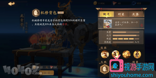 龙音子:天赋机械背包(四排中可以拿很多东西,一个移动的补给站也是一个富快递),锦囊绝佳拍档召唤机械马(机械马有130的耐力,还阔以发射导弹~)