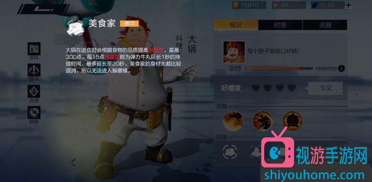 被动1:美食家,良莠并存,优点就是可以延迟三技能时间,缺点就是不能躲箱子,后期没地方躲,前期也不好埋伏人。被动2:美食时间,可以帮你顺利使用完道具,但是我认为只要在单挑的时候用稍微有用,你可以当着对面直接打药(除非对面有控制),后期就别想了,还没打完掉的血就比打的多了。被动3:油酥烧饼,翻东西可以出饼,挺有用的,但是不能瞬间回血,也是回复的能量条。