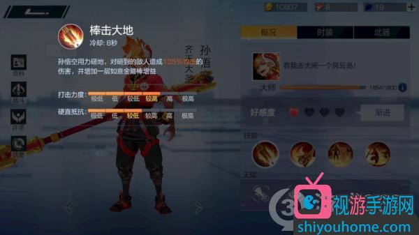 一技能:棒击大地作为主要的控制技能,猴子可在起手时使用,将敌人击飞即逼迫敌人交出硬直闪避,并能在战斗中快速获得一层被动,为后续的大招即连招做准备