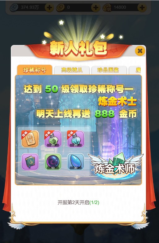 2、新手礼包中可以获取神兵进阶药和神兵技能书