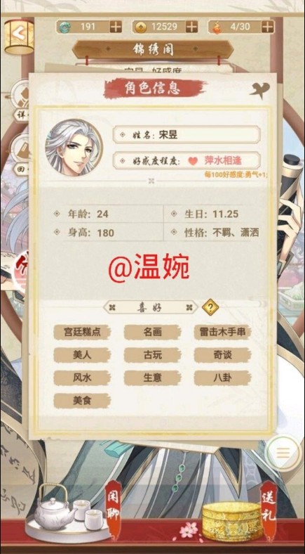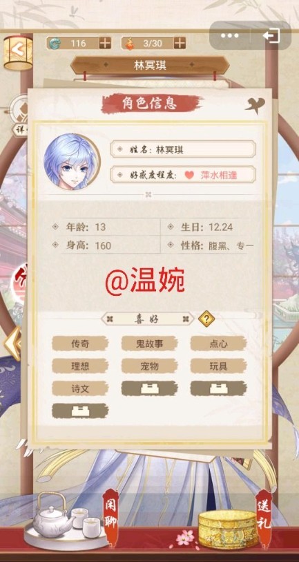 暂时只有这么多了,还差两个礼物和两个爱好,等我所有都刷完了会出四皇子人物攻略的