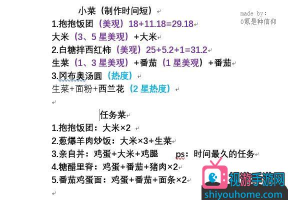 PS:冈布奥奶茶虽然基础售价很高,但是洋葱、牛奶食材前期产量低,而且图三做的高收益菜会大量需要,建议囤起来。