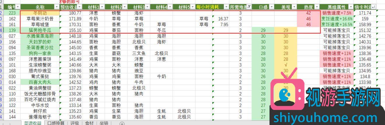 黑暗料理王菜谱收益表,黑暗料理王前期最盈利的菜推荐由视游网提供,主要帮助大家更好的驰聘,希望对你有所帮助!