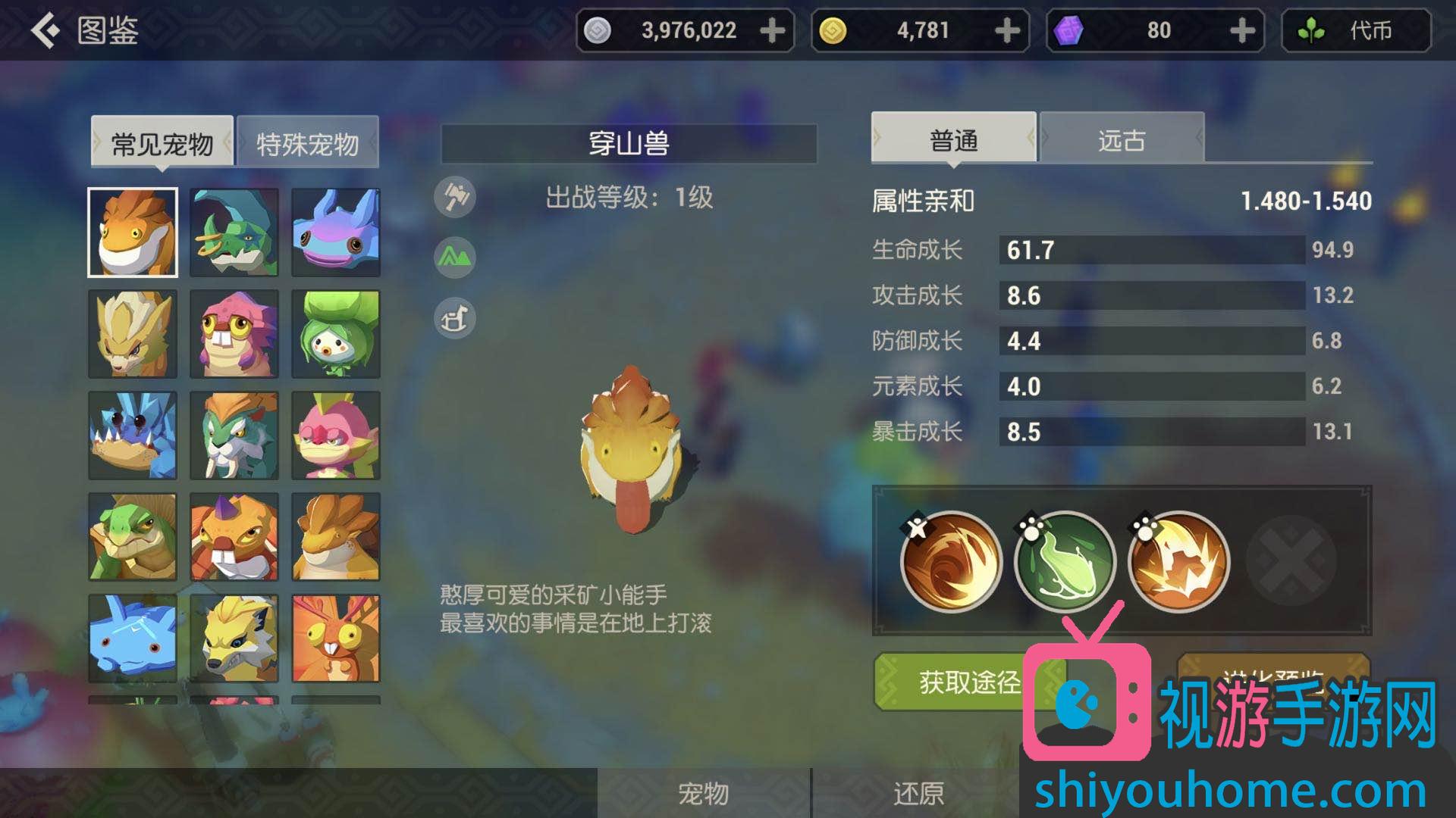 铠甲兽主要是通过穿山兽进化而成,第一步驯服好穿山兽,第二步找到进化用的材料即可,当然也要给宠物提升到一定的等级才能进化。如果觉得麻烦的话可以在缠风地区的北山矿场附近搜索已经进化的穿山兽。(穿山甲进化用的进化石推荐玩家直接用金币购买,而元素素材的话可以在商会直接用银币购买)