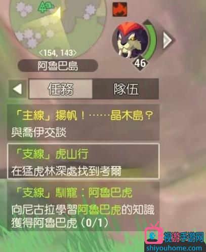 当阿鲁巴岛主线成功将主线剧情推出到牧婧岛后,你可以在哈巴哈拉港以南的老虎森林(下图红圈的位置)接收到这个任务。