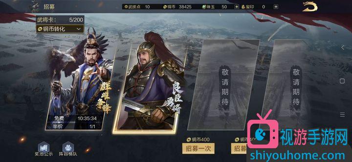 进入招募玩法中,你可以看到两个招募池,分别是【群雄争锋】和【良臣勇将】。