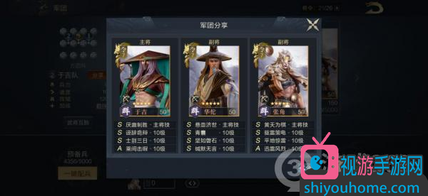 于吉、张角、华佗三人组队,能触发羁绊“惑世通神”,大幅提高武将的闪避能力。于吉作为主将,其主将技“厌蛊致胜”能降低敌方武将的智力,加上这支队伍以智力输出为主,是个非常不错的增伤手段。携带S级武技“士别三日”,其神算加成能大幅提高于吉的输出。“乘间击暇”则自带一定的治疗效果。华佗作为副将,能够提供治疗和续航能力,张角则能提供控制效果。但是要注意的是,这三名武将的专属兵种都是弓兵,一旦被近身,很容易会被击杀。