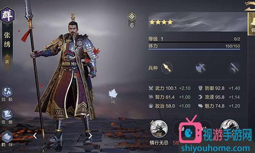 张绣同理,还是比较好抽的,2.10的武力成长也算四星里比较高的了,但我觉得一般都会喂了或者拆了,但要是前期实在没有比较好的话,张绣勉强能用用。