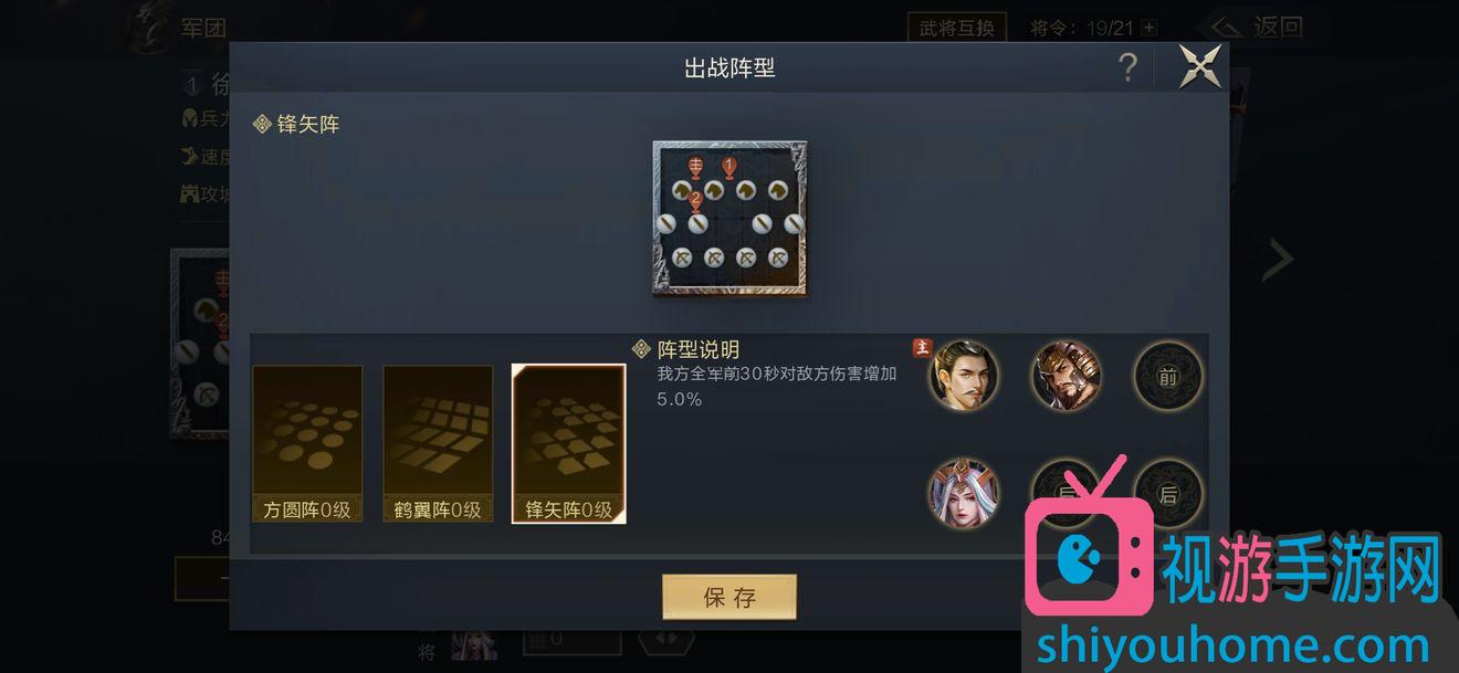 锋矢阵:我方全军前30秒对敌方伤害增加5%。