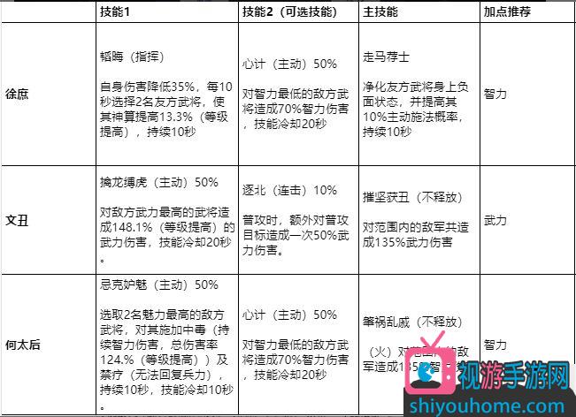 3、何太后的主动技能忌克妒魅概率释放后,能给对手带来持续的智力伤害与禁疗,如果有机会被徐庶提高主将施法概率,那么对敌人会造成非常致命的伤害。