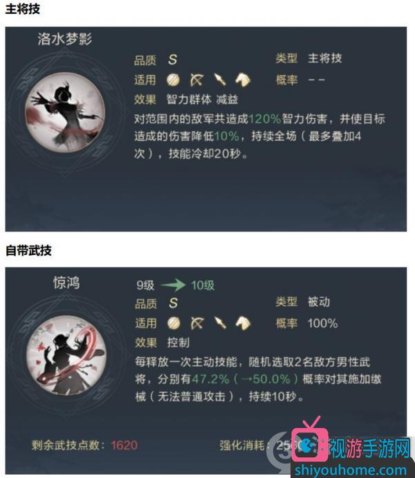 3.“洛水梦影”是一个少见的可叠加Debuff技,最多可以叠加4次,让它拥有了十分不俗的减伤效果。而这里的减伤,并不单单针对武力伤害又或智力伤害,对二者一视同仁,更加增添了“洛水梦影”的泛用性。