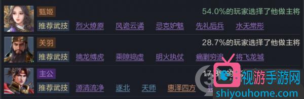 主打控制,犯颜激辩、先礼后兵;打伤害,烈火燎原、风诡云谲;打辅助,源清流净(如果搭配主公,一般由主公带这个武技)