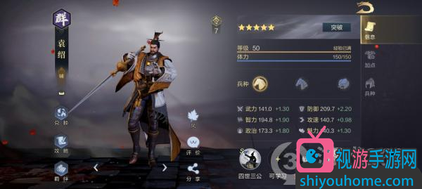 满级194.8的智力值,算是守住了四世三公的尊严,表现中规中矩。满级141.0的武力值,勉强及格水准。总体来看,袁绍在输出上没有什么值得期待的地方。