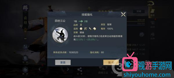 “四世三公”需要注意的点是,效果只能作用于主动技能,且为随机分配。最为理想的状态,是袁绍搭配两名主动技能输出型武将,这样可以保证“四世三公”效果最大化。