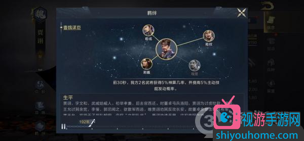 贾诩可以和荀彧、荀攸、郭嘉、程昱组成羁绊“曹魏谋臣”,前30秒,使我方2名武将获得5%神算,并提高5%主动武技发动概率。