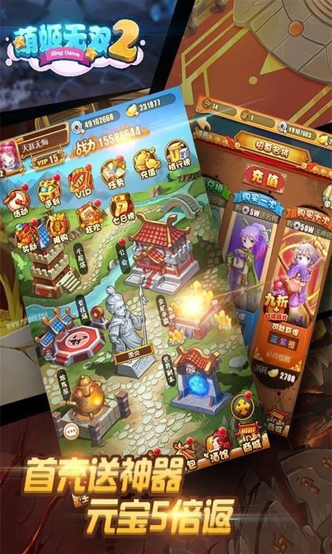 萌姬无双2是一款日系二次元风格的三国题材挂机RPG游戏.在这个三国世界里,所有的英雄皆萌娘,坐等你的驾驭调教,给你不一样的游戏体验.游戏画面非常精美,卡通可爱的萌娘,大大增加了游戏的乐趣,同时还有炫酷华丽的神装,随心装扮,打造个性时尚的专属造型,炫酷坐骑、拉菲翅膀,伴你一路征战,让你三国之旅再也不会孤单、枯燥,同时还有全新的宝石系统、神器系统、坐骑系统、天命系统等多种玩法,每种玩法都有独特的战斗乐趣玩家可以自由选择喜欢的方式进行战斗,游戏内自由度非常的高,丰富的副本任务,精彩刺激vpv战斗模式,与三国名将展开一场斗志斗勇的较量,热血的战斗,细腻的手感,强烈的打击感,还原最真实的三国战场,更有跨服战、公会战、世界BOSS等多种经典玩法,全新的游戏体验,一样的三国,不一样的体验,更有豪华大礼等待你来领取,每天免费资源送不停各种超级返利系统,每天赠送元宝、VIP经验,不充钱照样玩的舒心.做好准备了吗?三国萌娘们等着你的加入!视游之家给你带来萌姬无双2最新手机版游戏安卓手游免费下载安装!喜欢就来下载吧!
