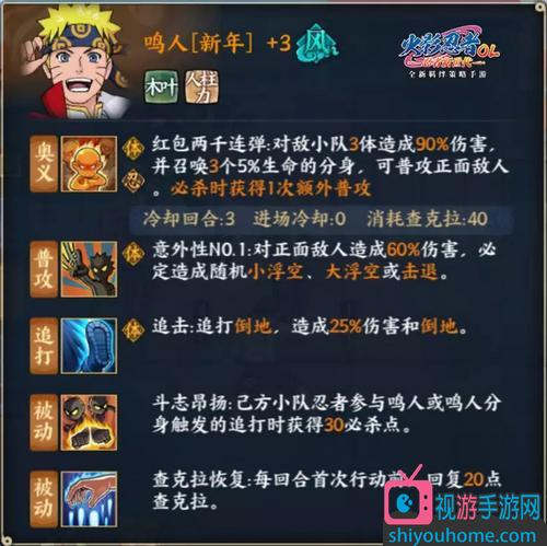 都说LOW到极致就是潮,简单至极其实就是繁!其实在这套阵容里藏着很多小细节,比如因为鸣人【新年】的普攻会随机触发三种追打。
